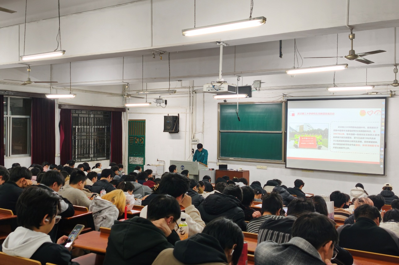 在核心宣讲环节,研支团成员罗承睿以“报效祖国、建功西部”为主题,结合教育帮扶、乡村振兴一线的鲜活案例,生动讲述了西部大地的发展变迁与基层群众的殷切期盼,号召同学们将个人理想融入国家发展大局,主动到祖国最需要的地方发光发热,用青春汗水书写报国华章。