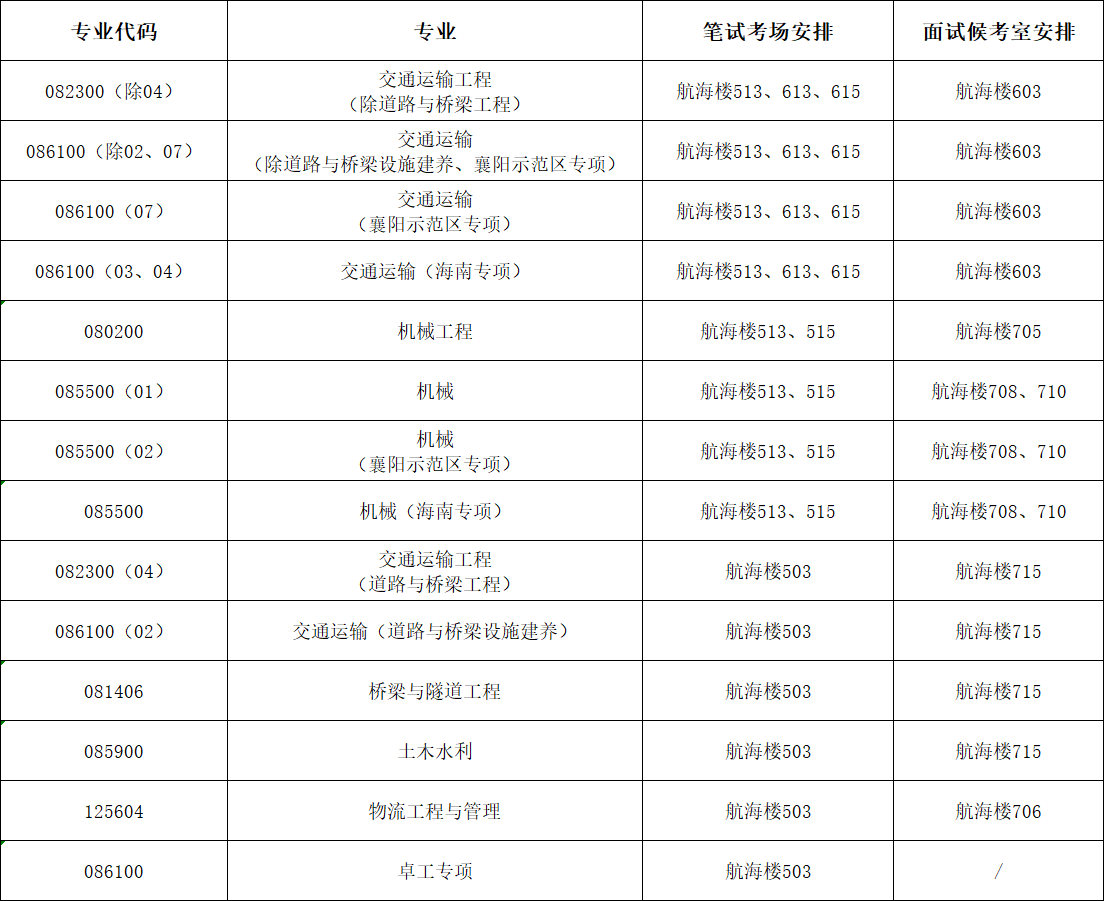 (五)考场安排:
