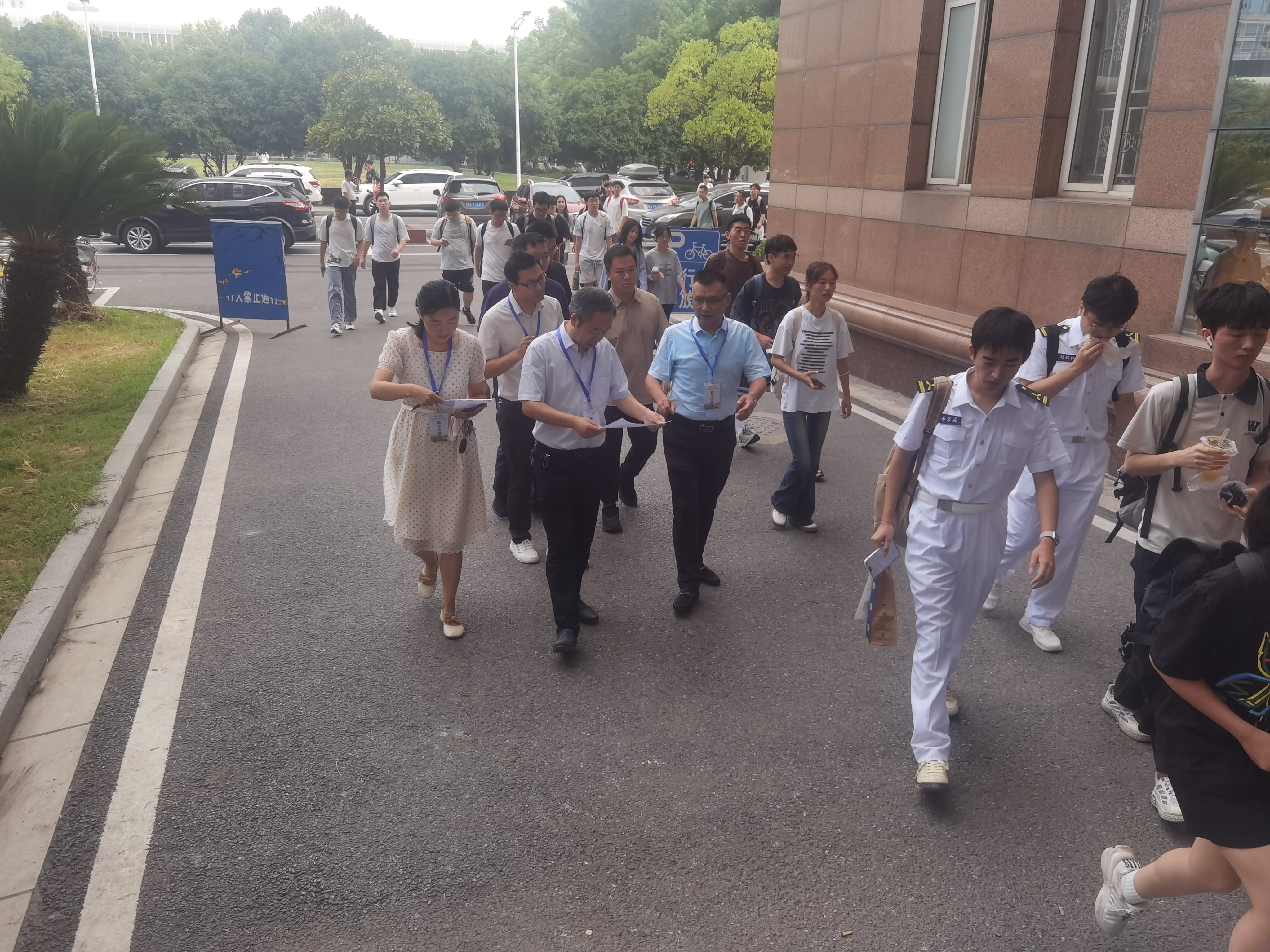 早上7点40分,2个检查小组分别在航海楼和主楼集合,对航海楼和主楼的1-2节课程进行全面检查。一方面查看教师到岗、教学组织、上课资料等授权准备情况;另一方面关心学生到课、课本资料、课堂纪律、精神面貌等上课情况。