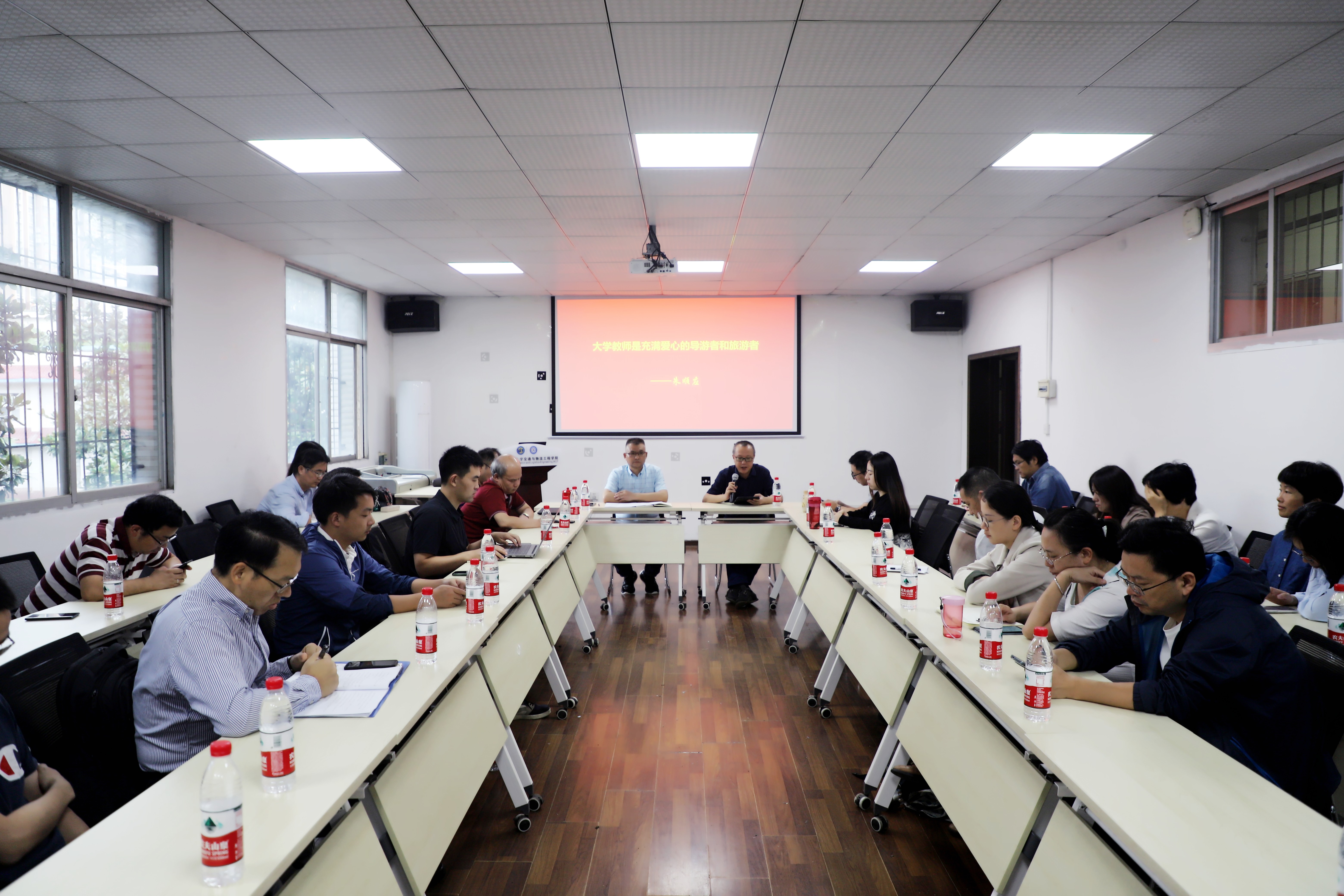 朱教授以《大学教师是充满爱心的导游者和旅游者》为题,从“作为一名教师,在导游者的身份上首先要做到思想坚定”“而在教师作为导游者的同时,需要教师作为一名更加优秀的旅游者”“在导游者和旅游者双重身份下,需要我们还需要做到具备爱心、有责任感、能经受委屈、要做到尽可能的有趣善导”“带领学生们认识到无限风光在险峰”几个方面向大家分享了怎样做一个好老师的感悟和体会。