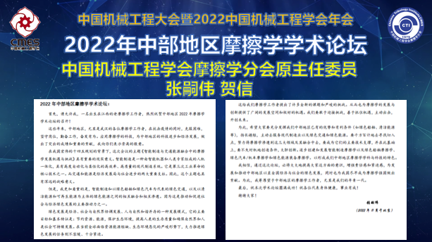 【科研动态】中国机械工程大会暨2022中国机械工程学会年会系列活动2022年中部地区摩擦学学术论坛成功举办