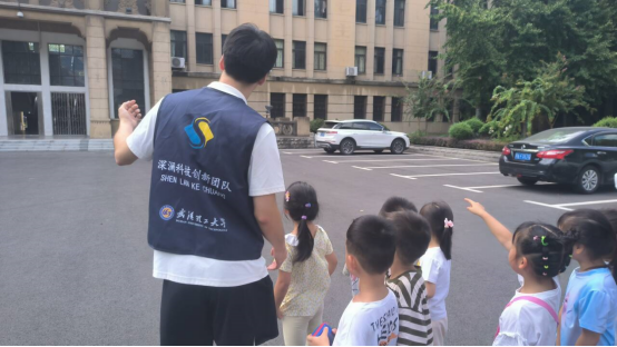 团队成员在幼儿园老师的陪同下,带领孩子们前往余区主楼参观。队员们讲解了主楼建筑历史与象征意义,在孩子们的心中埋下对知识的向往与渴望。