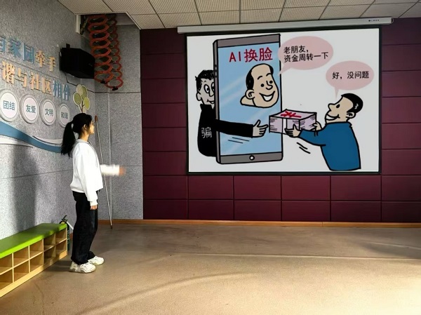 讲座伊始,志愿者播放近期高发的“AI换脸诈骗”典型案例视频,揭示了诈骗分子如何利用人工智能技术伪装亲友实施诈骗。随后,志愿者采用“情景模拟+互动问答”的形式,逐步拆解诈骗话术套路,手把手教老人们下载“国家反诈中心”APP,并设置诈骗电话拦截功能,为老人们的手机安全与财产安全保驾护航。