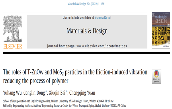 国内电竞博彩 可靠性与新能源团队撰写的学术论文“The roles of T-ZnOw and MoS2 particles in the friction-induced vibration reducing the process of polymer”被复合材料领域国际顶级学术期刊《Materials & Design》发表。该期刊位于JCR Q1区,中科院1区,2021年影响因子9.417,5年影响因子8.272。