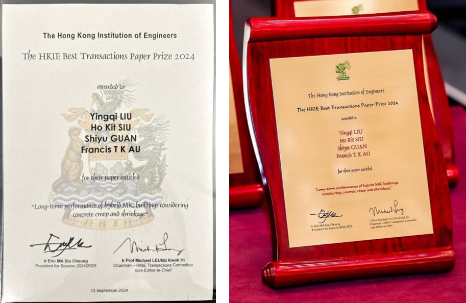 获奖证书及牌匾(文章链接://hkie.org.hk/hkietransactions/article_detail.php?id=925)