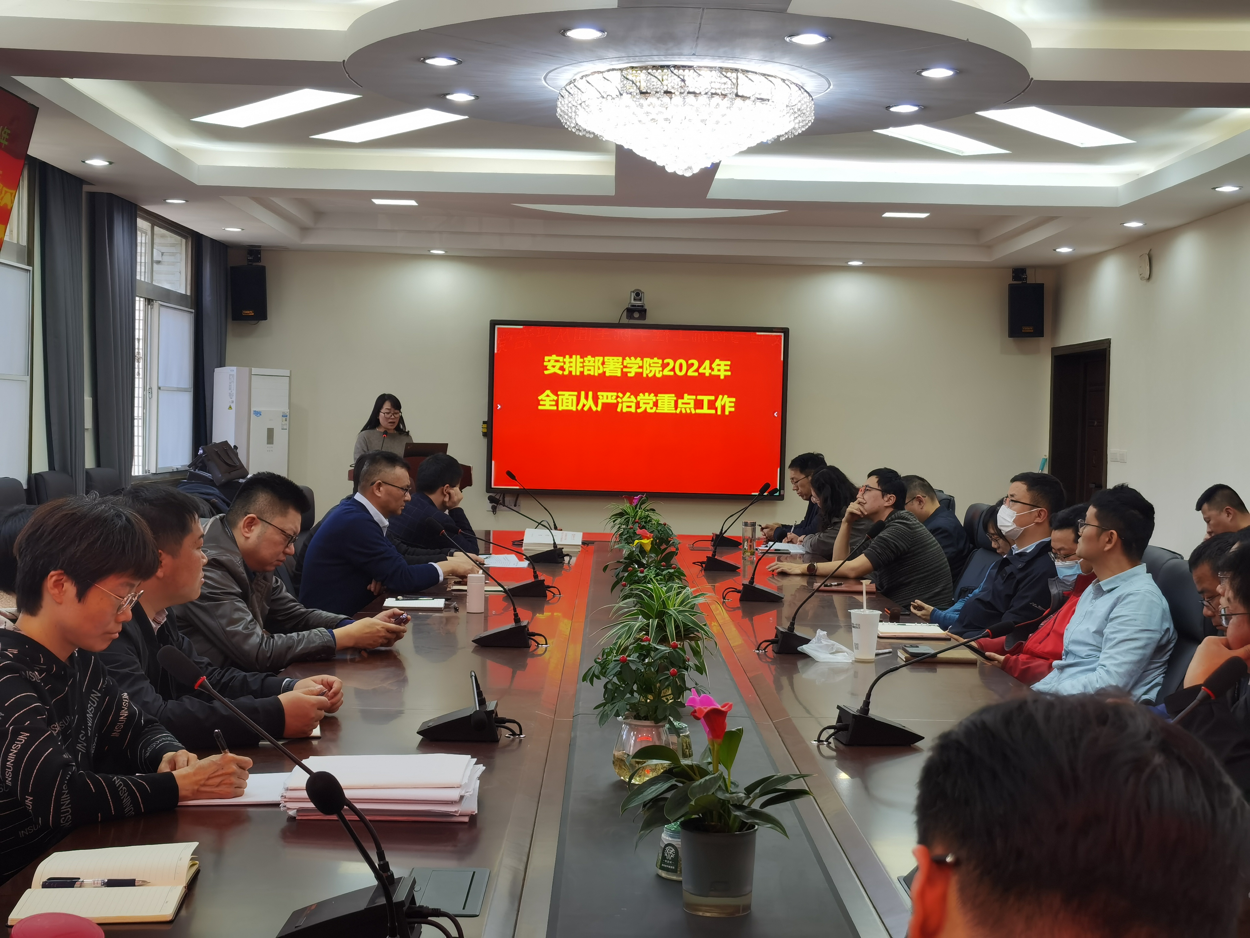 院党委书记肖耀根传达学习了学校2024年全面从严治党大会精神,校党委书记信思金的讲话《持续推进自我革命 不断深化从严治党 为更好服务教育强国建设提供坚强保障》,校长杨宗凯在主持会议时的讲话,校党委副书记、纪委书记夏江敬的讲话《坚定不移推进党的自我革命 数字赋能纪检监察巡察工作提质增效》。