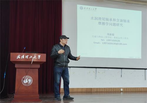 讲坛正式开始,赵章焰首席教授以“港口装备技术研究现状与发展展望”为题,根据交通强国建设纲要要求及建设世界一流港口的指导意见,指出海运是“海上丝绸之路”国家战略的体现,港口是其中的关键节点,从港口机械及装备研究现状、发展方向及思考等方面做了精彩报告。周新聪首席教授以“水润滑尾轴承和含油轴承摩擦学问题研究”为题,从舰船推进轴系轴承类别及作用、舰船水润滑尾轴承的研究意义、舰船水润滑尾轴承存在的问题、水润滑尾轴承摩擦学相关问题的研究、舰船水润滑尾轴承创新性研究、粉末含油轴承、吊舱推进器、现代油液分析技术八个方面作了精彩报告。
