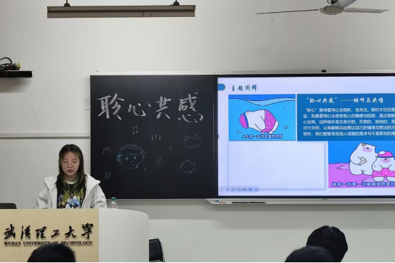 班会伊始,涂铭源进行了心理健康知识普及。内容涵盖聆听与共情、共同走过成长的旅程以及如何识别和应对负面情绪。同学们认真聆听,收获颇丰。