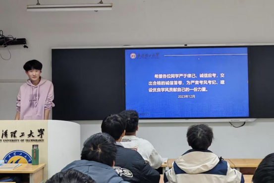 为引导同学们树立正确的备考态度,严肃考风考纪,2024年12月11日晚,机设2407班于航海楼504教室开展了“积极备考,诚信应考”主题班会。本次班会由学习委员张林昊主持,机设2407班全体成员参与。