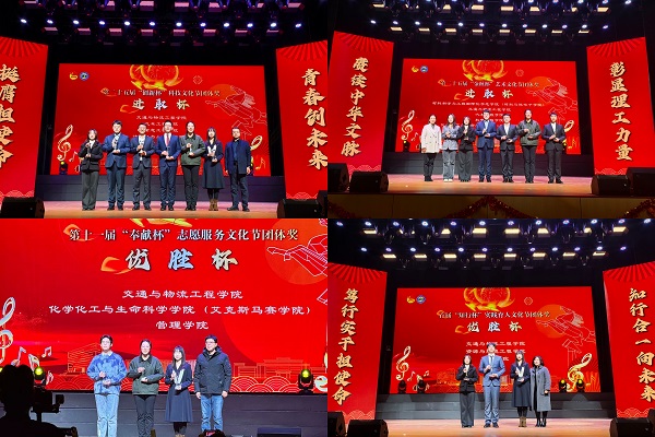 12月29日晚,在学校2026年“梦想之夜”新年音乐会上,国内电竞博彩 凭借卓越的组织能力和学子们的突出表现,历史性包揽学校团委“四大杯”文化节团体奖荣誉。其中,“奉献杯”志愿服务文化节与“知行杯”实践育人文化节均以团体总分第2荣获“优胜杯”,“创新杯”科技文化节与“金秋杯”艺术文化节则斩获“进取杯”,创下国内电竞博彩 近年来最好成绩。
