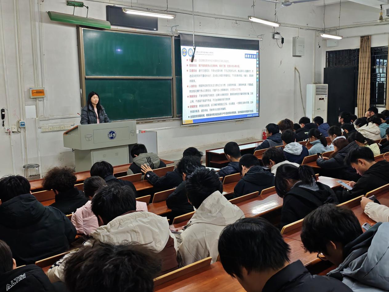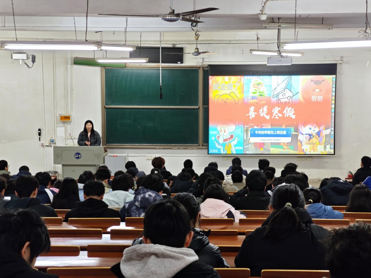 为筑牢学生假期安全防线,1月8日下午,2025级交通运输类专业、交运博学班年级周课在东配楼101教室开展。本次活动以“安全法治 牢记心间喜迎寒假”为主题,由辅导员孙研老师主讲,为同学们规划假期生活提供了科学指引,助力同学们度过一个平安、有意义的寒假假期。