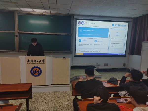 结束了对国家学生体质健康标准的解读之后,进入了由年级长袁嘉希主持,袁嘉希、郭艳、黄文清三人分享个人学习与生活感悟的“学习分享促进会”模块。首先由郭艳同学分享了自己的观点:过程比成长更重要。她鼓励同学们多复习总结,稳扎稳打,同时保持一个好心情来投入学习,在学习与生活之间找到平衡;随后由黄文清同学分享自己对于大学的看法,她着重讨论了大学生的自由与幸福,推荐同学们大胆的尝试自己想做的事,心甘情愿的走自己选的路;然后由袁嘉希同学分享他推荐的时间规划,他认为应当从现在开始做好规划,理清思路,找准目标,实现个人的理想。最后辅导员进行了总结阐述,他希望同学们可以从袁嘉希同学等人的理解感悟中孕育出属于自己的思考,找到适合自己的发展方向。