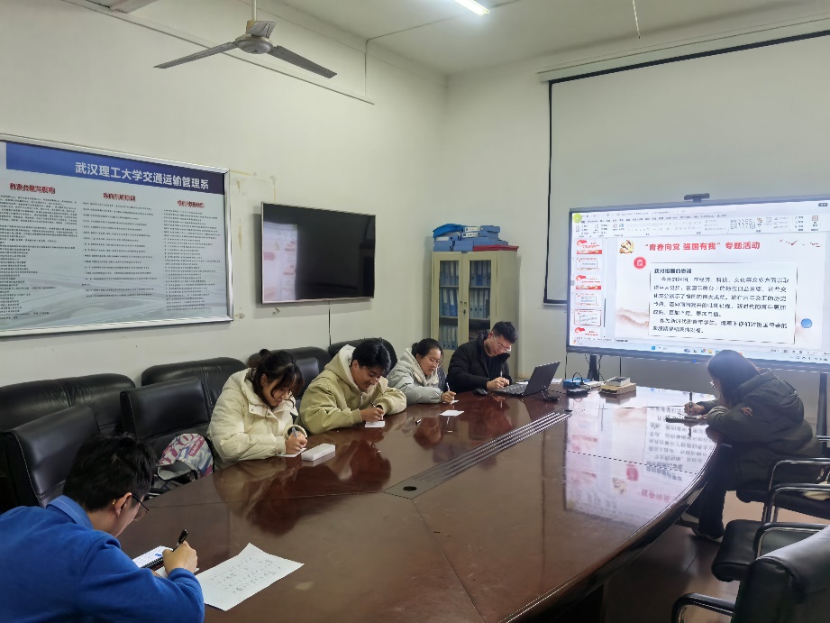12月13日下午,交通运输管理系研究生第一党支部在交管楼会议室开展了“青春向党 强国有我”专题党日活动,引导广大党员深入学习党的光辉历史,坚定理想信念,增强党性修养。党支部书记谭富有同志主持会议。