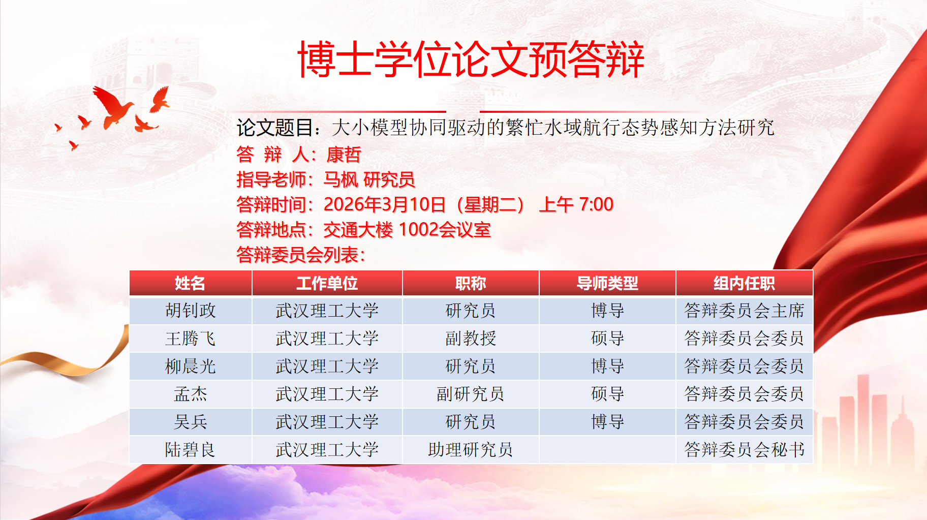 博士学位论文预答辩公告