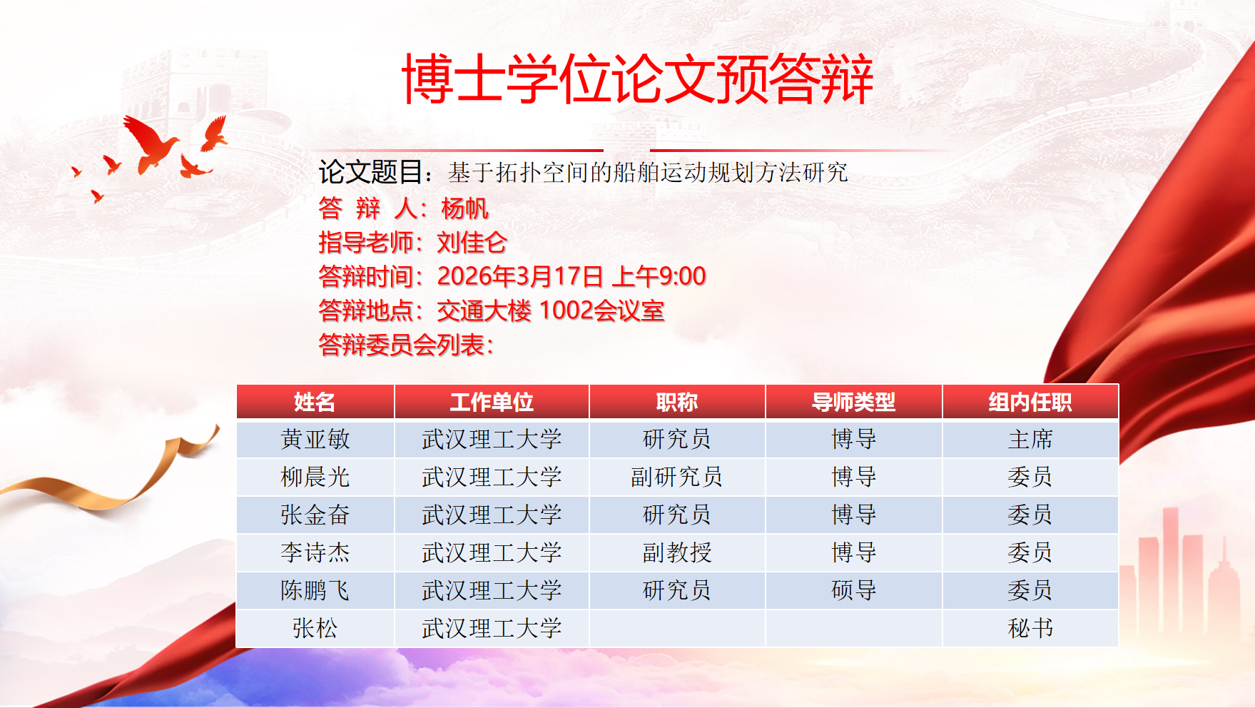 博士学位论文预答辩公告